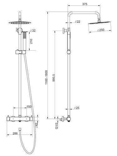 Duschsäule LUGO Duschsystem, Brausegarnitur in Chrom, Duschgarnitur, Regendusche