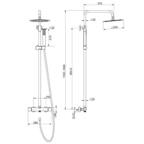 Duschsäule LUGO Duschsystem, Brausegarnitur in Chrom, Thermostatisch, Regendusche
