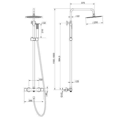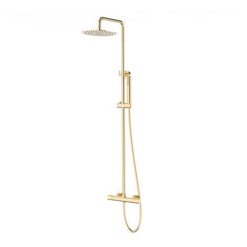 Duschsäule LUGO Duschsystem, Brausegarnitur in Gold, Thermostatisch, Regendusche