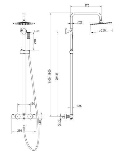 Duschsäule LUGO Duschsystem, Brausegarnitur in Schwarz, Thermostatisch, Regendusche