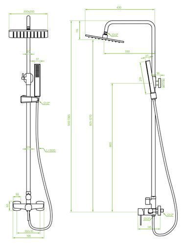 Abmessungen der Kopfbrause: