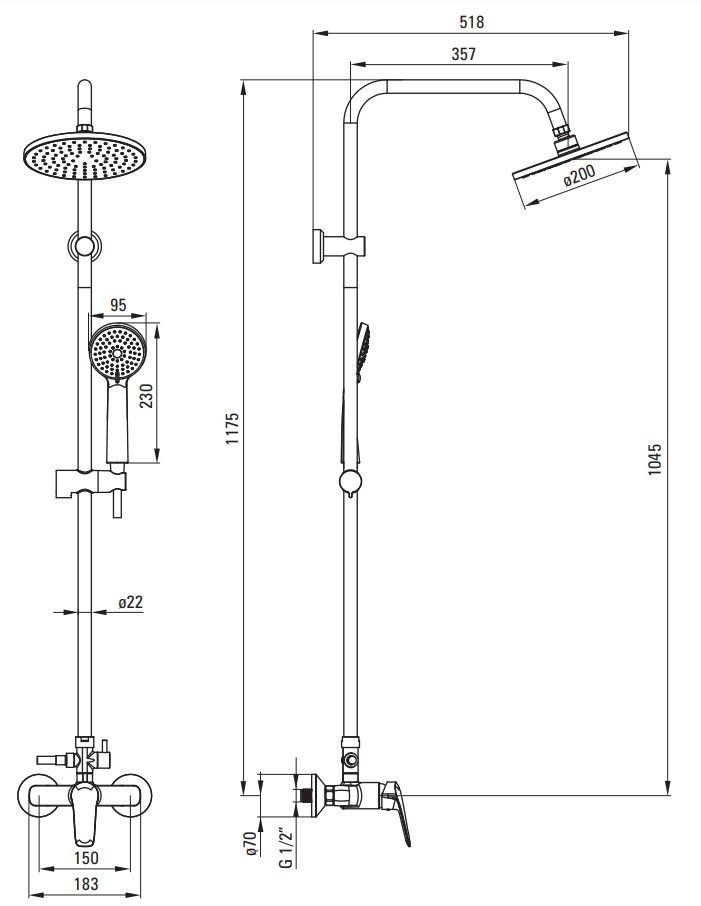 Duschset Boro Überkopfbrause mit Brausearmatur Duschsäule Regendusche Schwarz