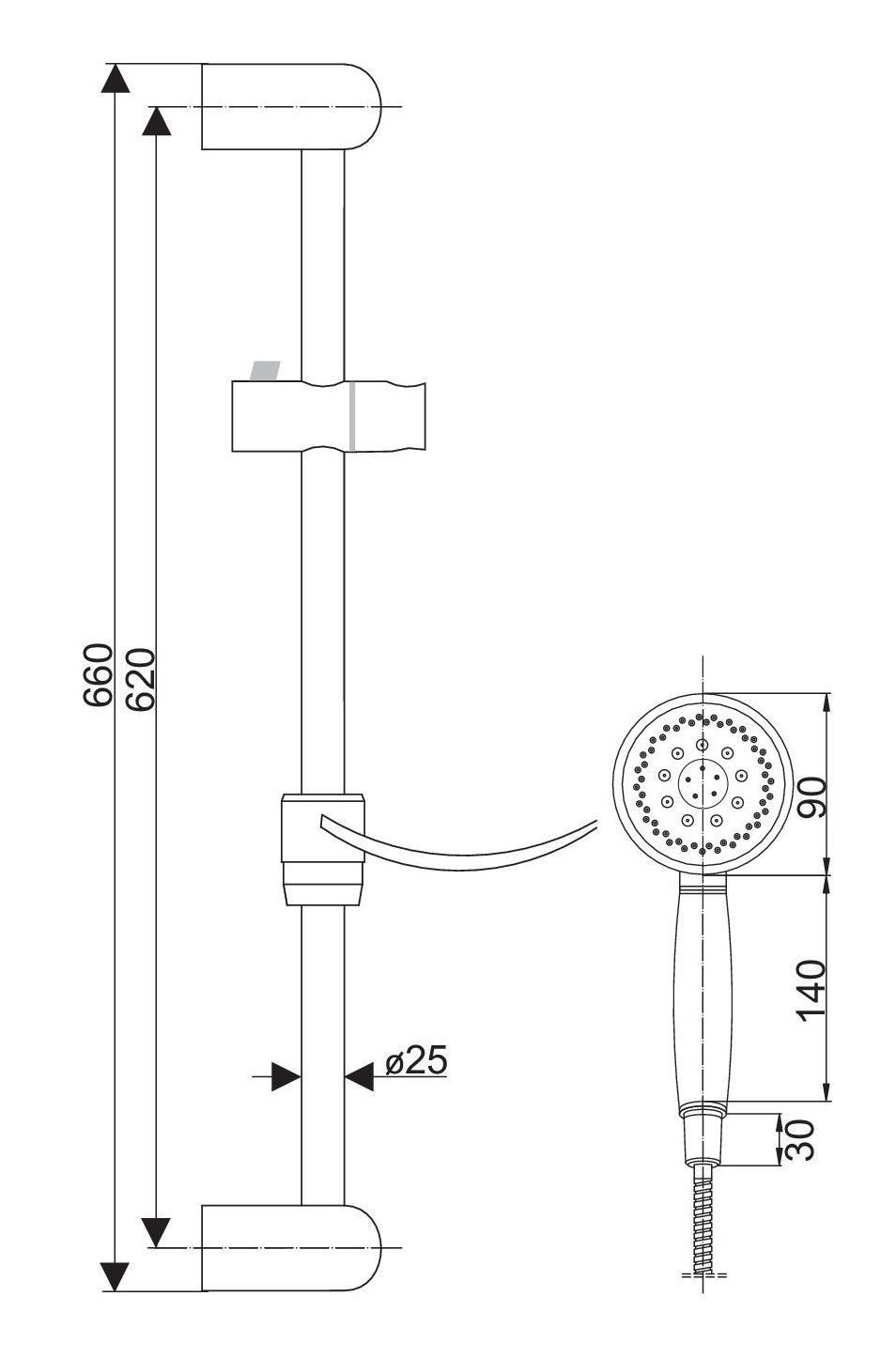 Duschstange mit Brause und Seifenschale, Brausegarnitur mit Handbrause, Chrom