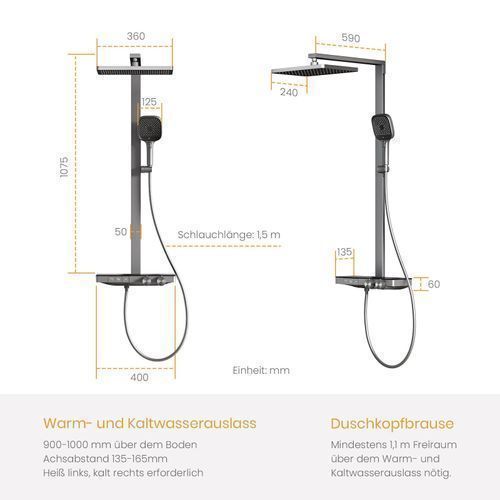 Duschsystem Duschset Regendusche Mit Thermostat Einstellbare Wassermenge Bad