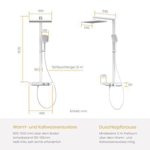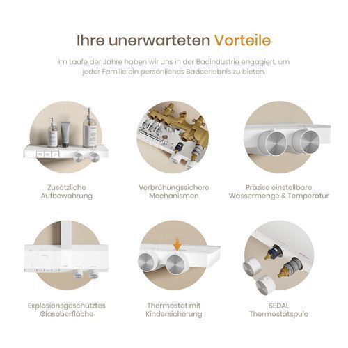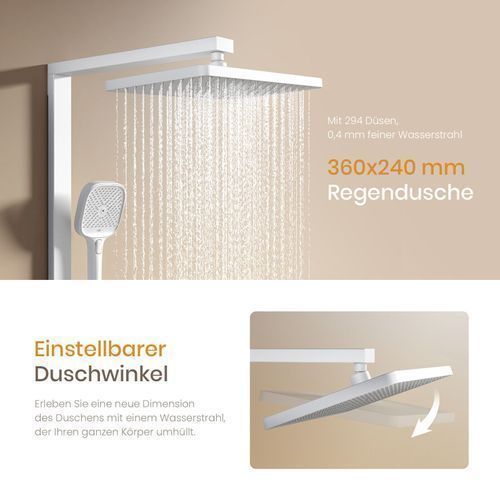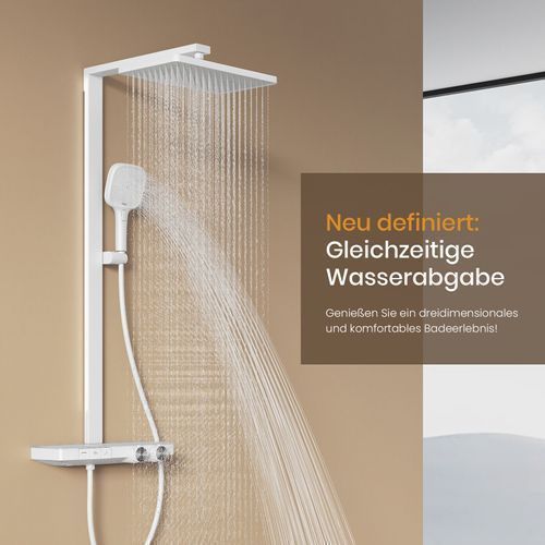 Duschsystem Duschset Regendusche Mit Thermostat Einstellbare Wassermenge Weiß
