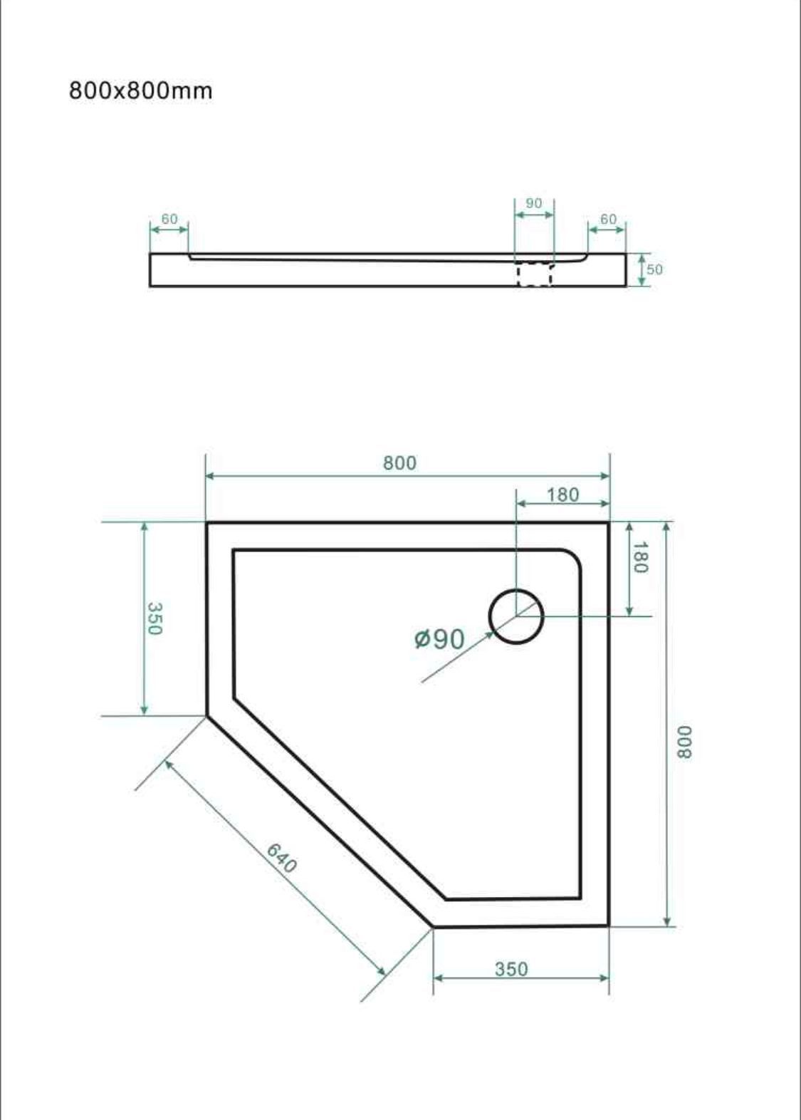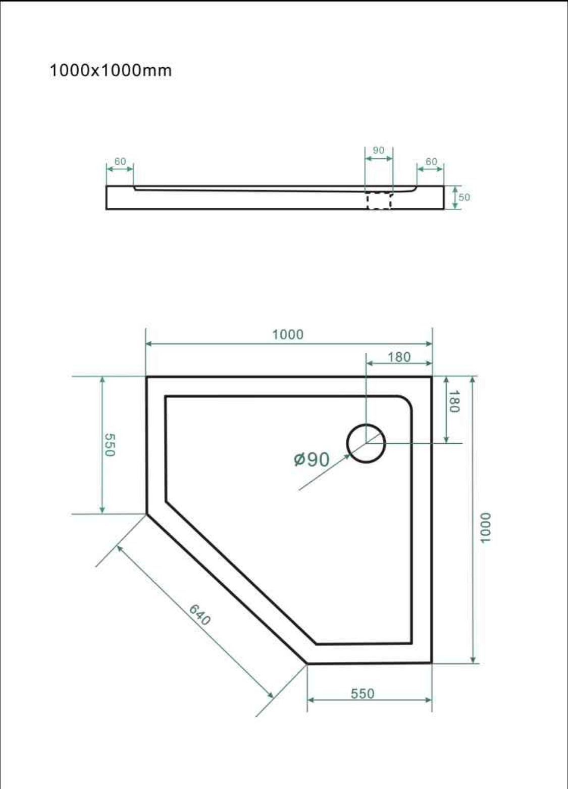 Duschtasse Duschwanne Fünfeck Acryl Bad Weiß 50mm fünfeckig