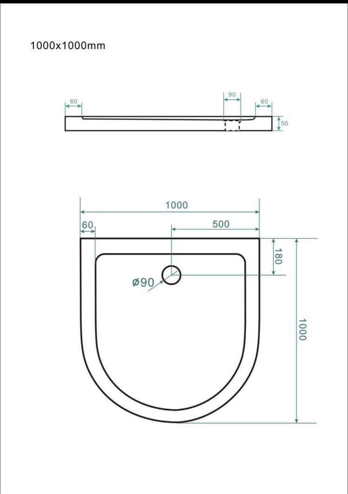 Duschtasse Duschwanne Halbkreis U-Form halbrund Acryl Rund Weiß 50mm