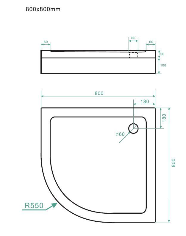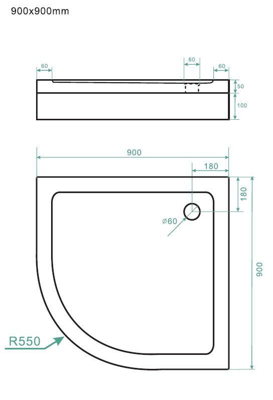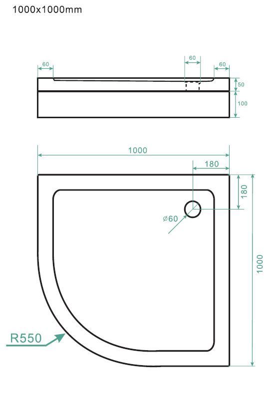Duschtasse Duschwanne Viertelkreis Acryl Bad Rund Weiß 50mm
