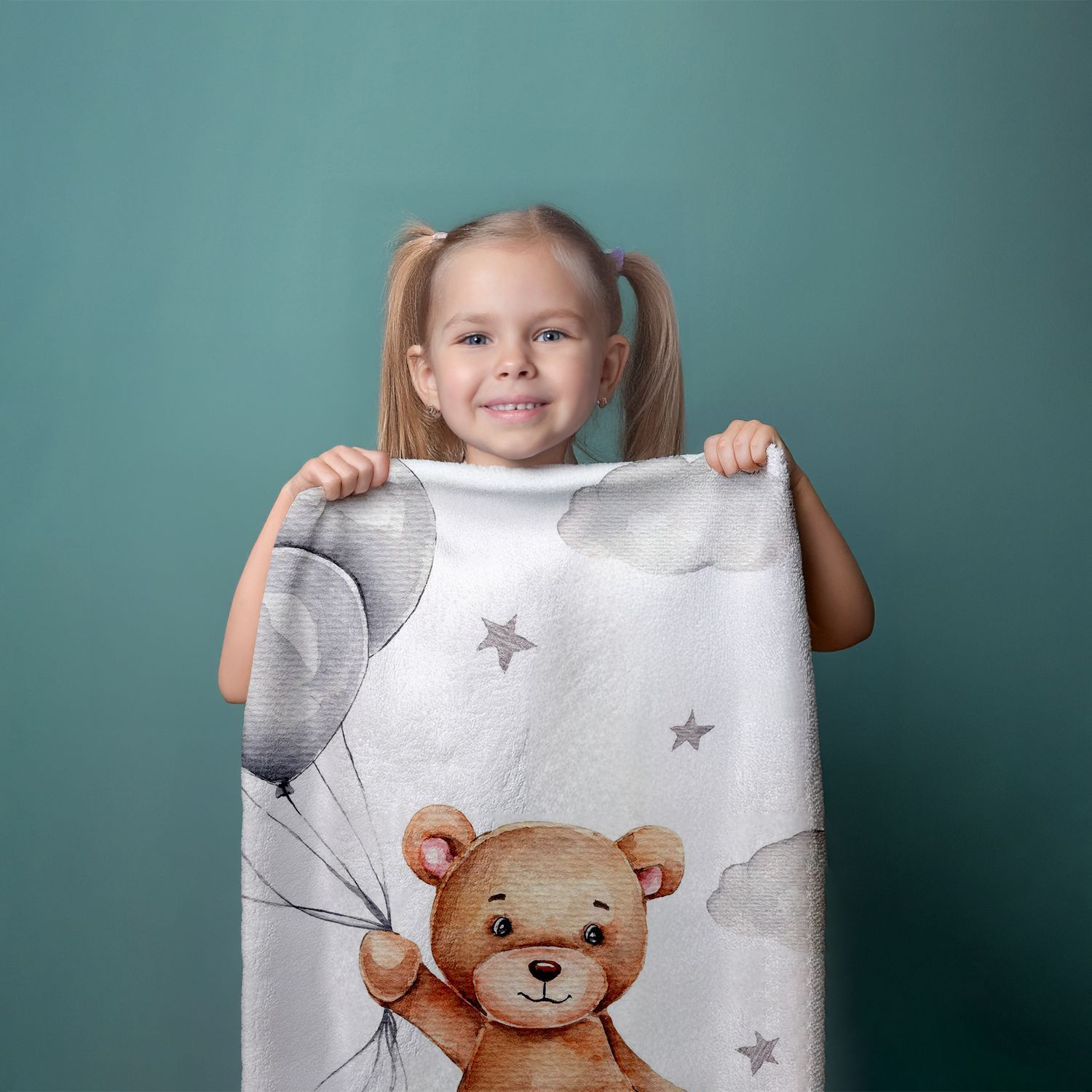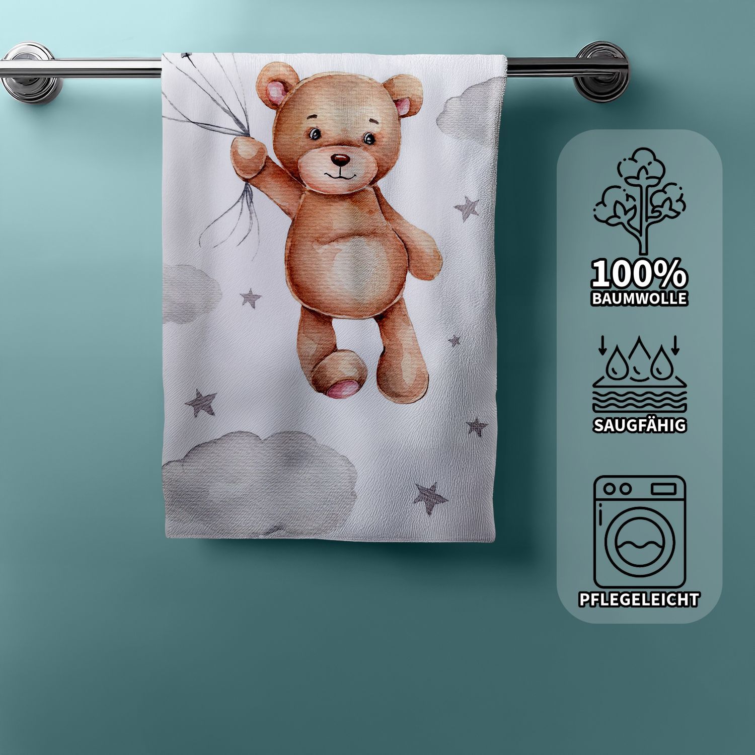 Duschtuch Strandtuch Badetuch Teddy mit Ballon 70 x 140 cm
