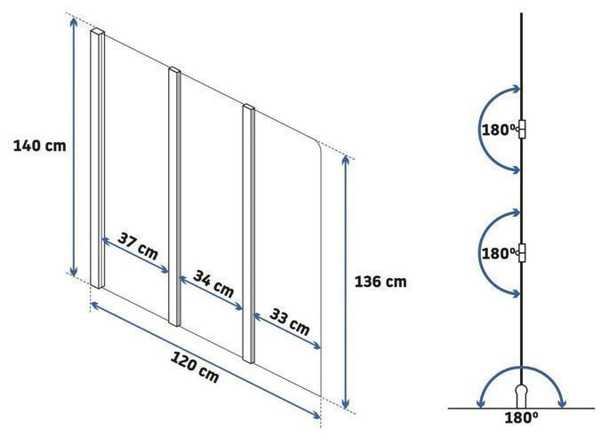 Duschwand Duschabtrennung 3-teilig AGAT 120x140 Gehärtetes Glas 5 mm Faltwand