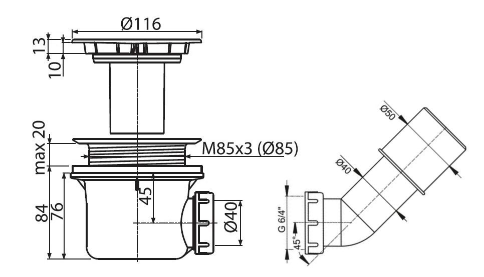 Duschwanne Ablauf 90mm Ablaufgarnitur chrom Siphon Ablauf flach 84mm Duschtasse