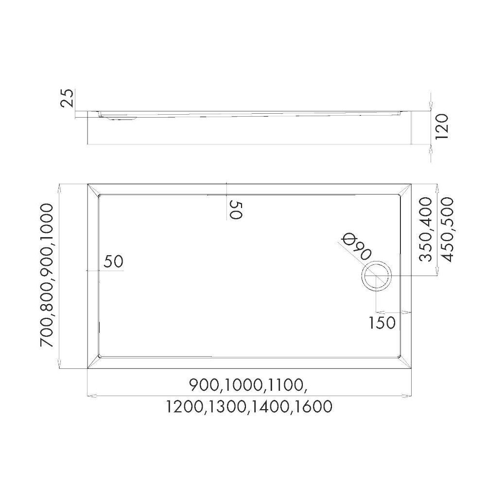 100x100 cm, 100x70 cm, 100x80 cm, 100x90 cm, 110x80 cm, 110x90 cm, 120x100 cm, 120x70 cm, 120x80 cm, 120x90 cm, 130x80 cm