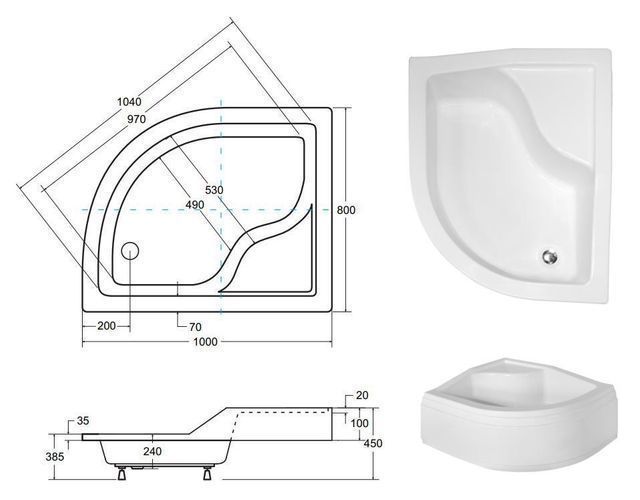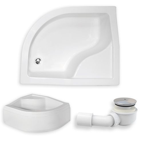 Duschwanne Halbrund MAXI 100x80 Links AcrylSchürze | Ablaufgarnitur & Füße im SET