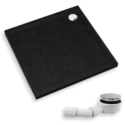 Duschwanne Quadratisch Acryl CASPAR NEW 80x80x4,5 Schwarz Steinoptik | Ablauf im SET
