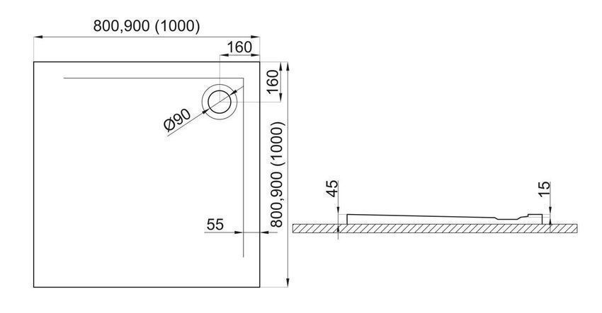 Duschwanne Quadratisch Acryl GEOS 80x80x4,5 Steinoptik | Ablaufgarnitur im SET !