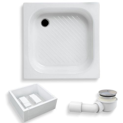 Duschwanne Quadratisch Acryl KAREN 70x70 Weiß Styroporträger | Ablauf & Füße im SET!
