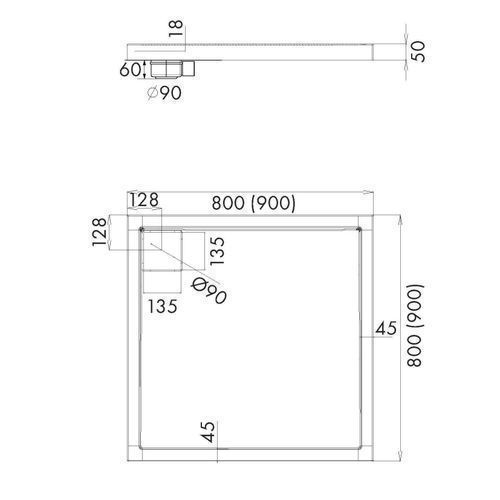 Duschwanne Quadratisch Acryl OMEGA 80x80x5 Weiß | Ablaufgarnitur im SET !
