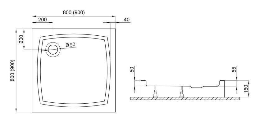 Duschwanne Quadratisch Acryl PATIO 80x80x5,5x16 Weiß | Ablaufgarnitur & Füße im SET!