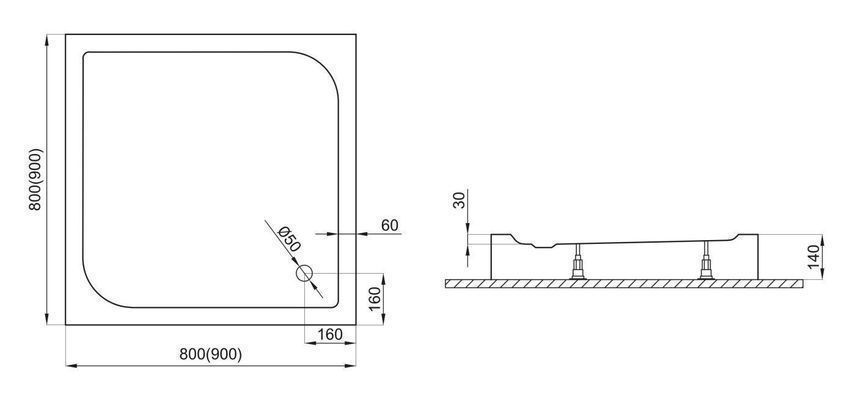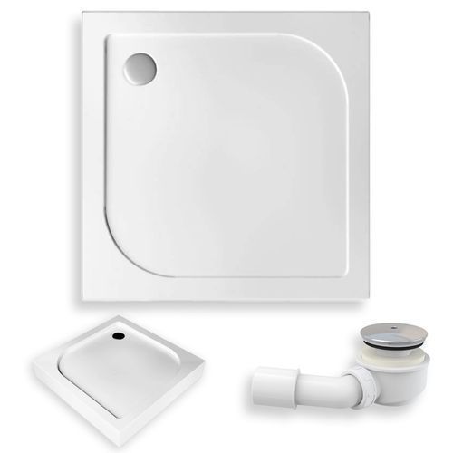 Duschwanne Quadratisch Acryl TENOR 80x80x3x14 Weiß | Ablaufgarnitur & Füße im SET!