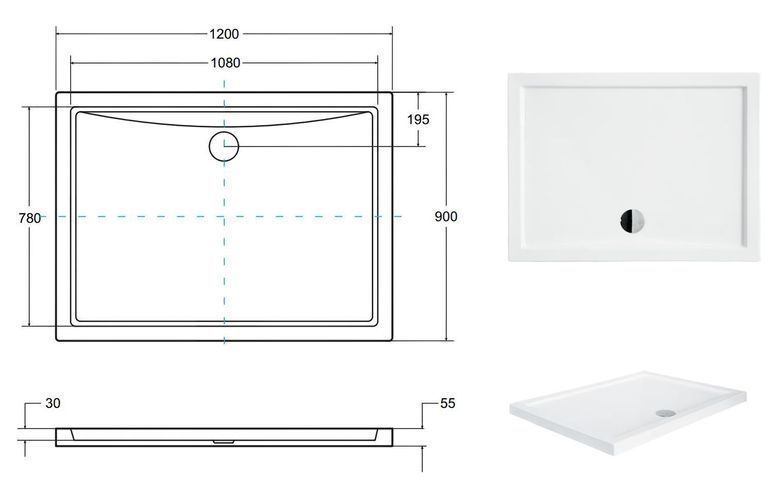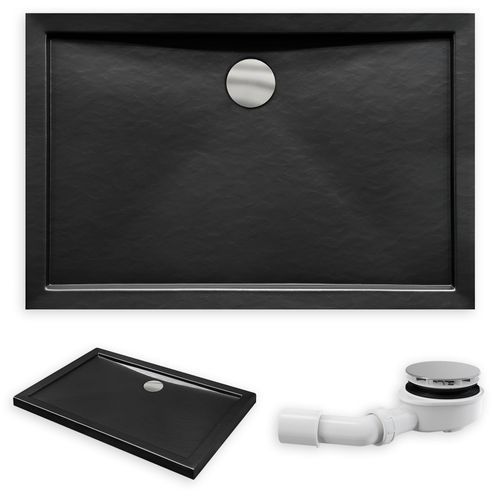 Duschwanne Rechteck Acryl ALPINA 120x90x5,5 Schwarz Steinoptik | Ablauf im SET !