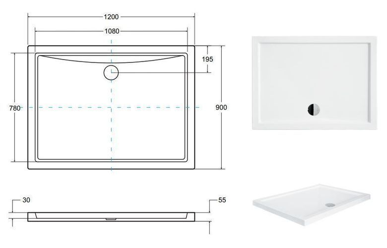 Duschwanne Rechteck Acryl ALPINA 120x90x5,5 Weiß | Ablaufgarnitur im SET !