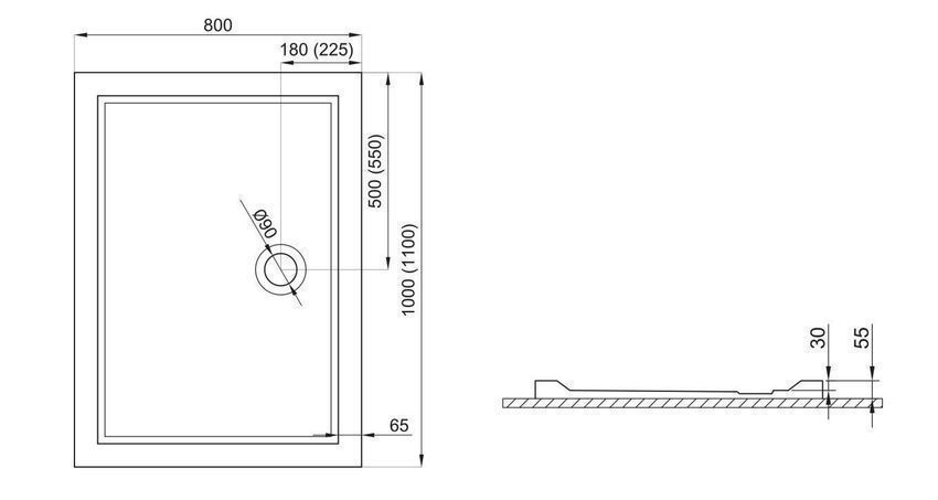 Duschwanne Rechteck Acryl GOLIAT 110x80x5,5 Weiß | Ablaufgarnitur im SET !