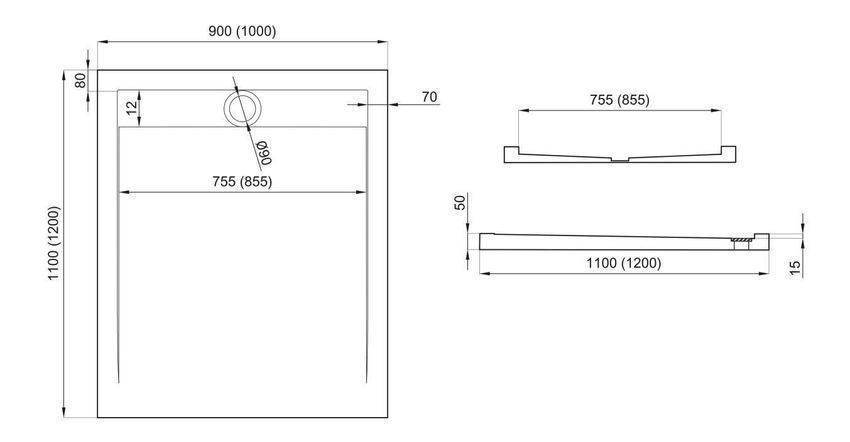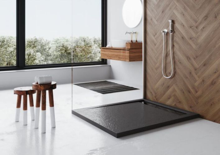 Duschwanne Rechteck Acryl WEST NEW 120x100x5 Schwarz Steinoptik | Ablauf im SET !