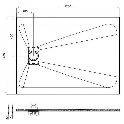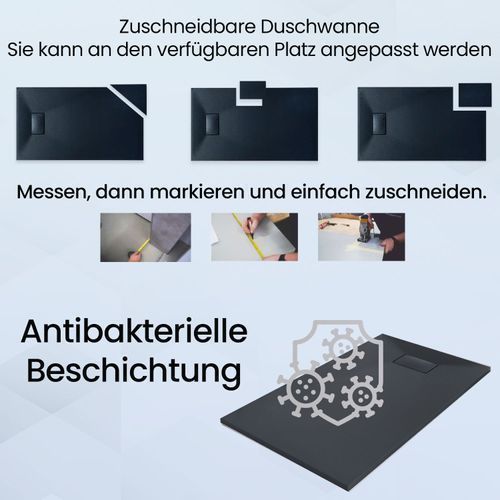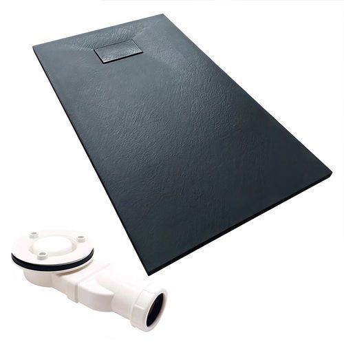 Duschwanne Rechteck Komposit VIDAR 120x90x3,2 Schwarz Steinoptik | Ablauf im SET !