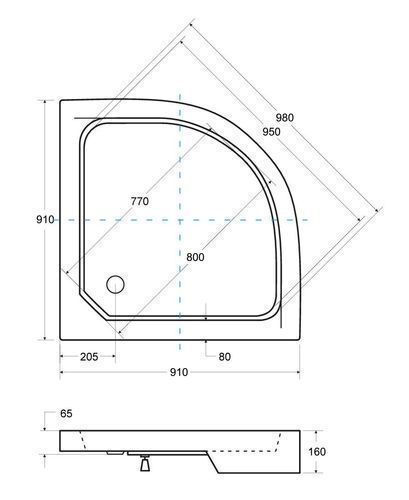 Duschwanne Viertelkreis Acryl ALEX 90x90x6,5x16 Schwar, Steinoptik | Ablauf im SET