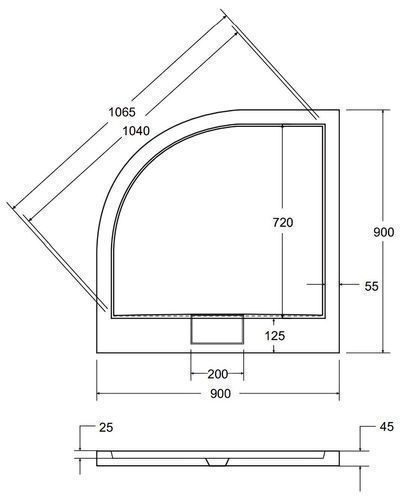 Duschwanne Viertelkreis Acryl AXIM SLIM 90x90x4.5 Weiß | Ablaufgarnitur im SET !