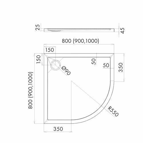 Duschwanne Viertelkreis Acryl Corrina NEW 100x100x4.5 Weiß | Ablaufgarnitur im SET !