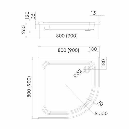 Duschwanne Viertelkreis Acryl Grawello 80x80 Styroporträger | Ablauf & Füße im SET!