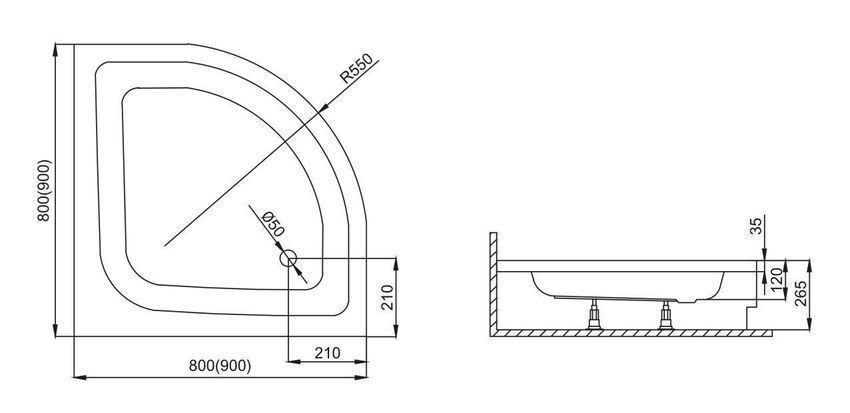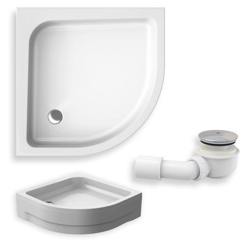 Duschwanne Viertelkreis Acryl PAKO 80x80 Weiß Acrylschürze | Ablauf & Füße im SET!