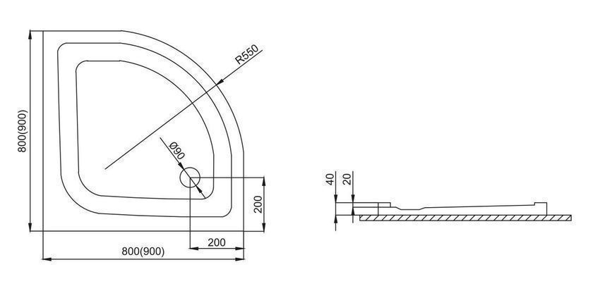 Duschwanne Viertelkreis Acryl PAKO 90x90x4 Weiß | Ablaufgarnitur im SET !