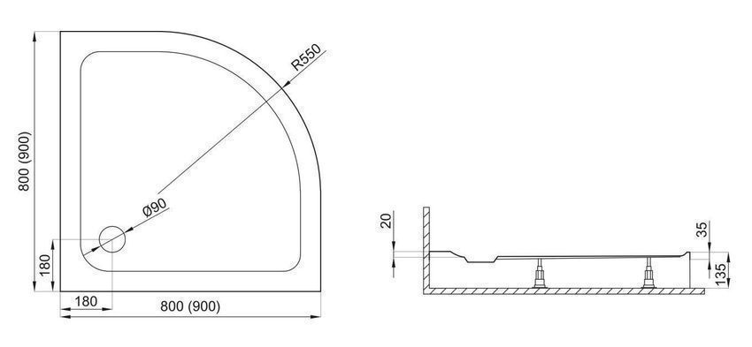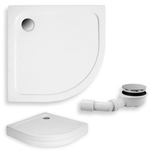 Duschwanne Viertelkreis Acryl Standard 90x90 Weiß Acrylschürze | Ablauf & Füße im SET