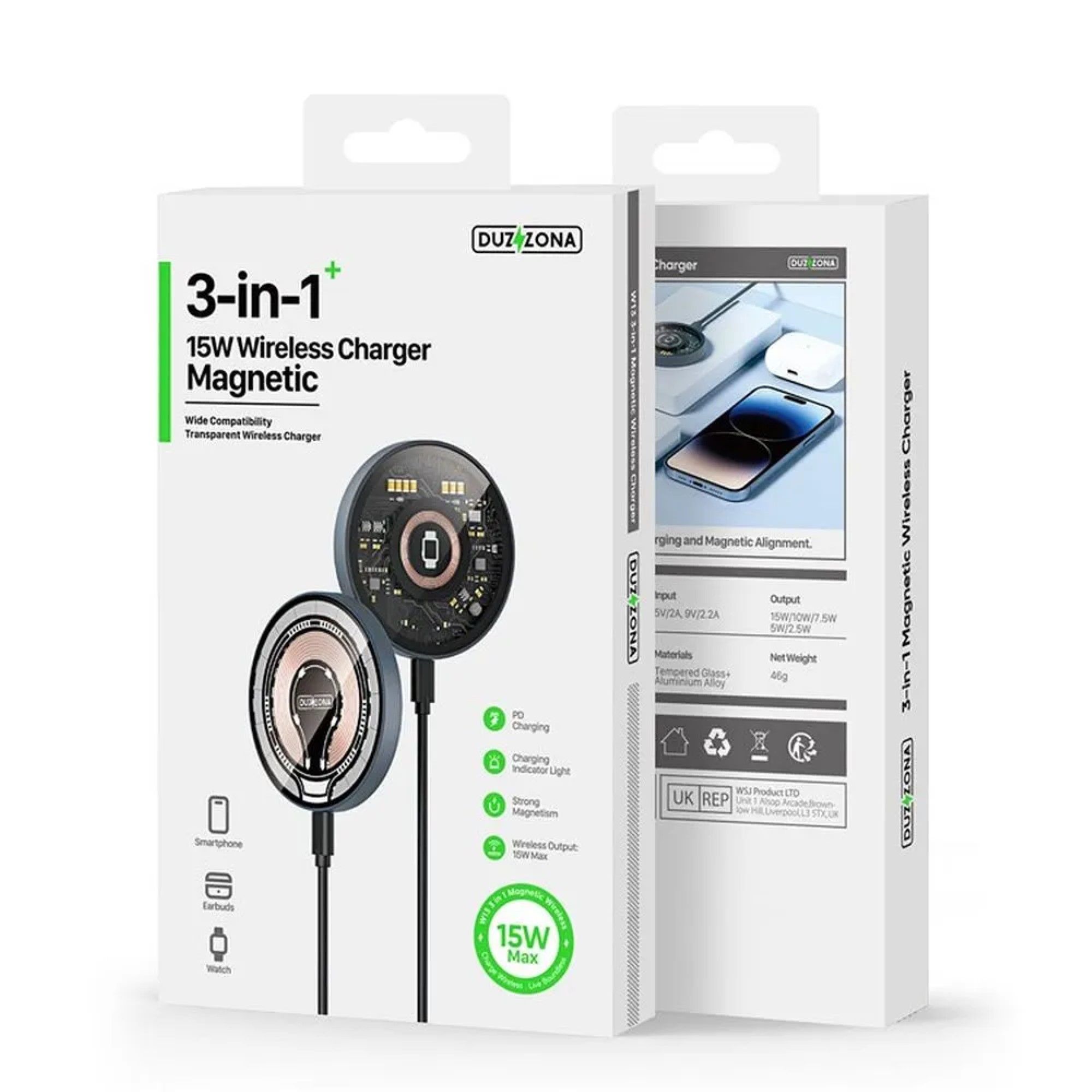 Duzzona Induktives Tischladegerät 15W kompatibel mit MagSafe Transparent