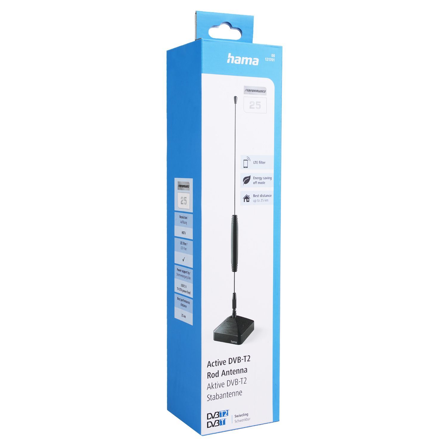 Hama DVB-T2 Stabantenne Performance 25 Aktiv Schwarz