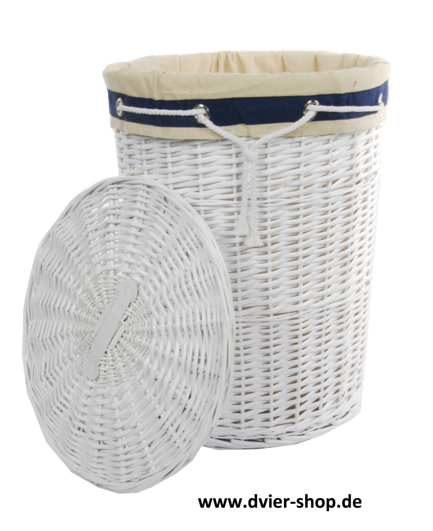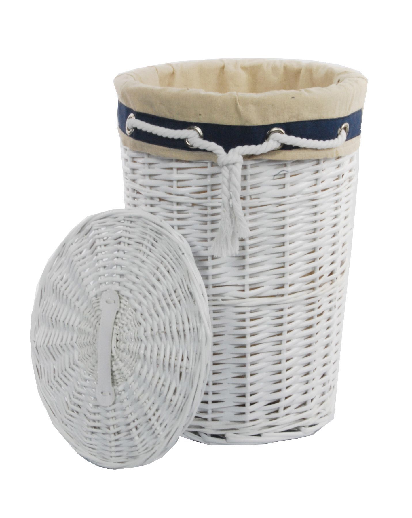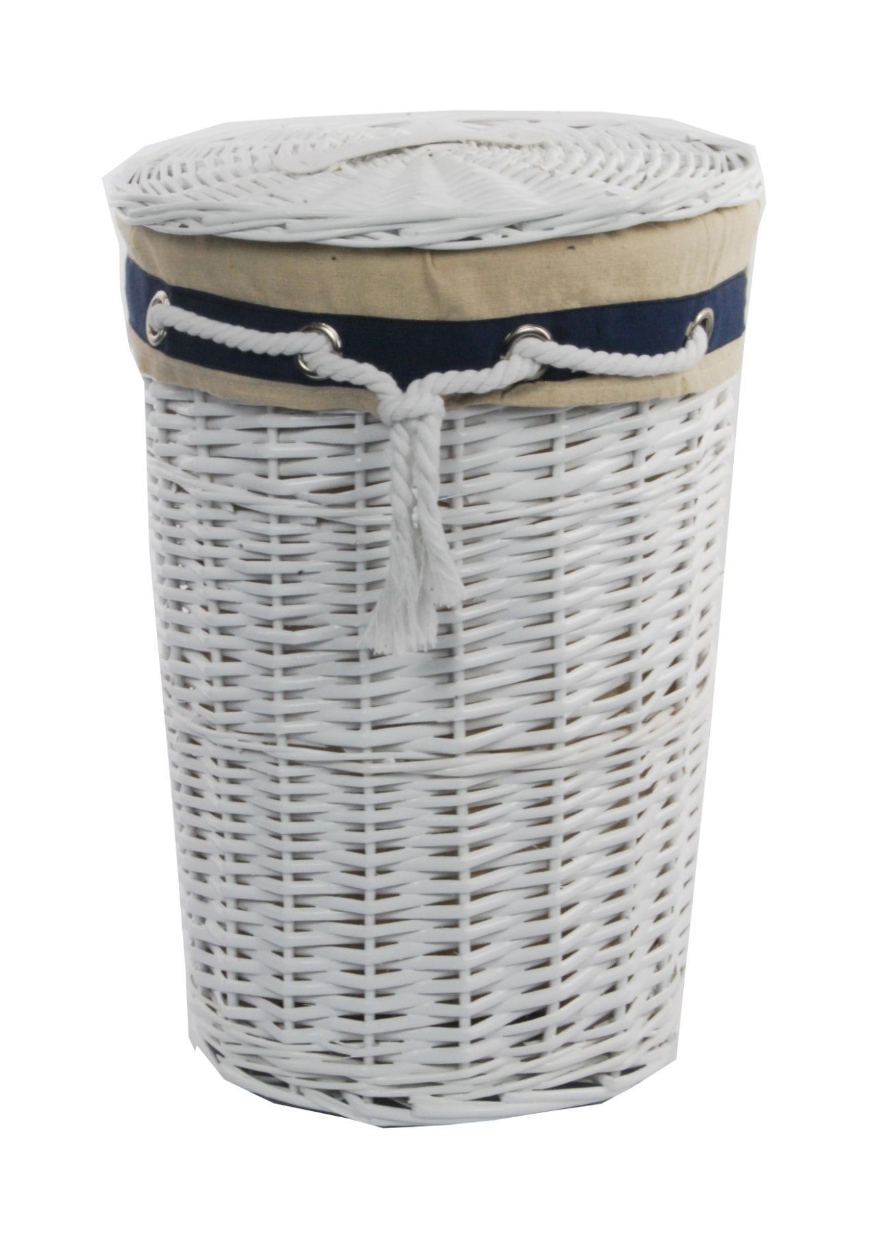DVier Wäschekorb Wäschetonnen Wäschetruhe Weide weiß marine rund 30L