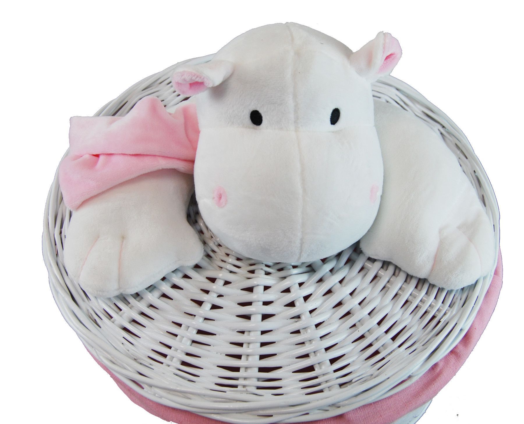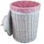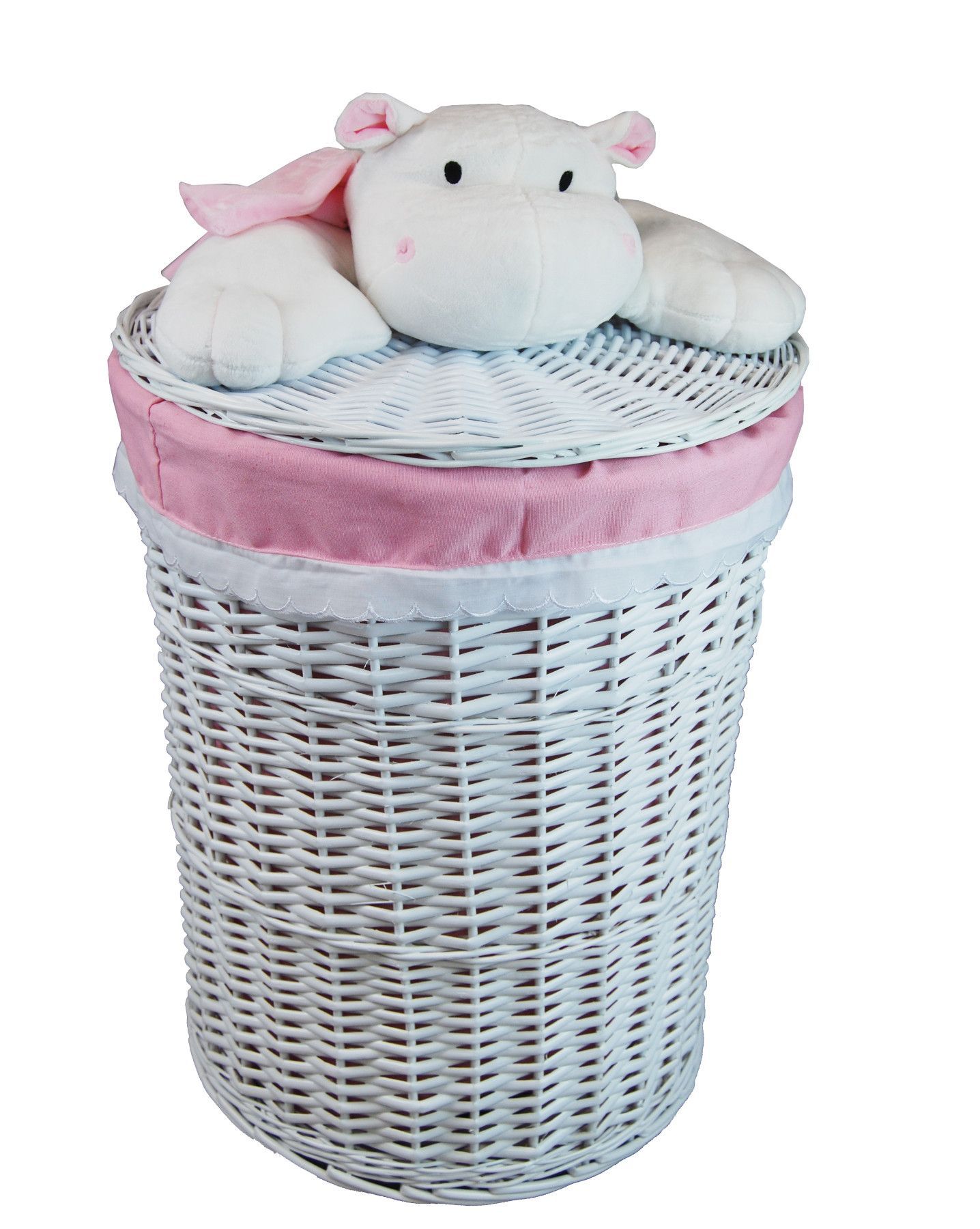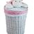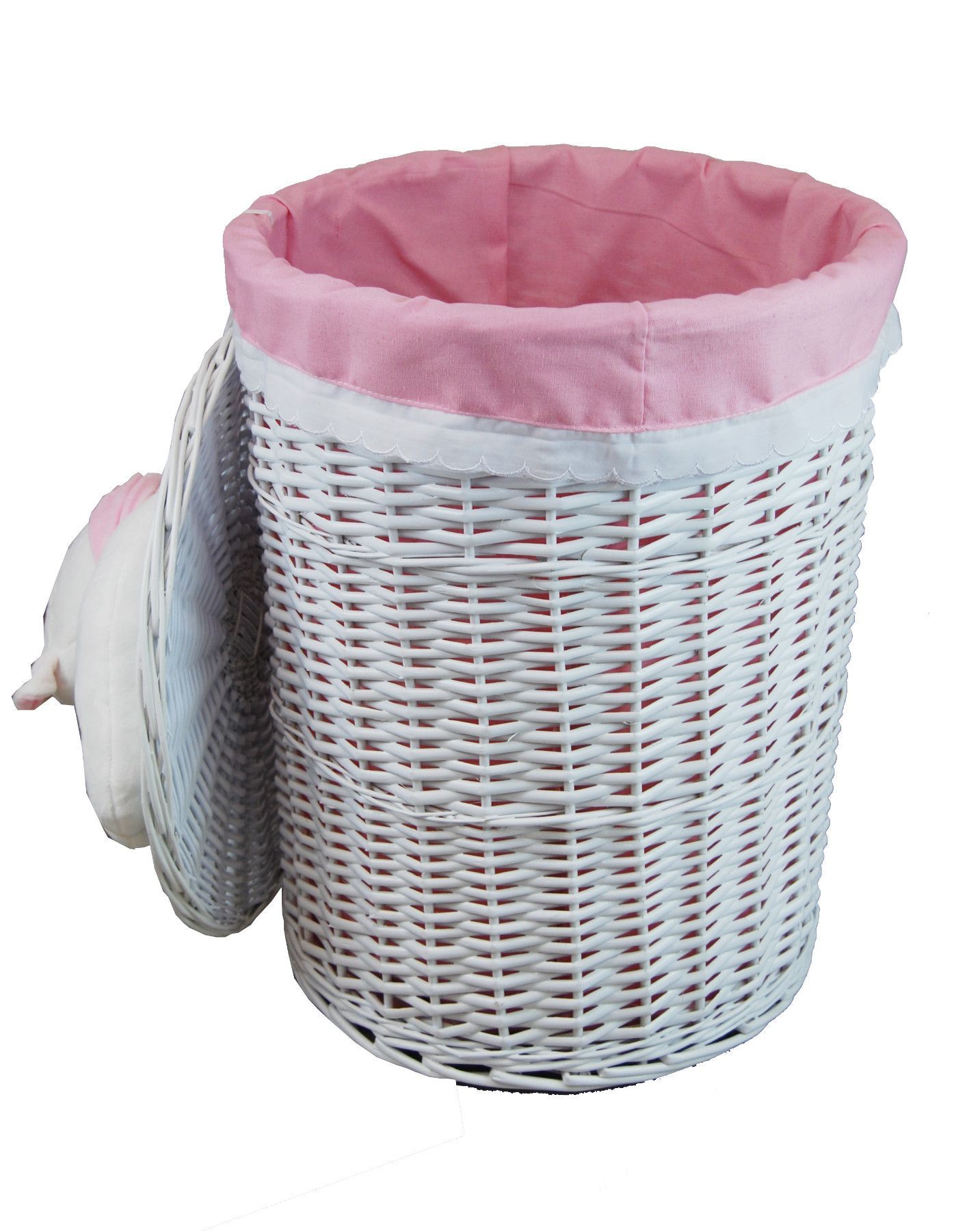 DVier Wäschekorb Wäschetonnen Wäschetruhe Weide weiß rund gr.L 100L Hippochen rosa
