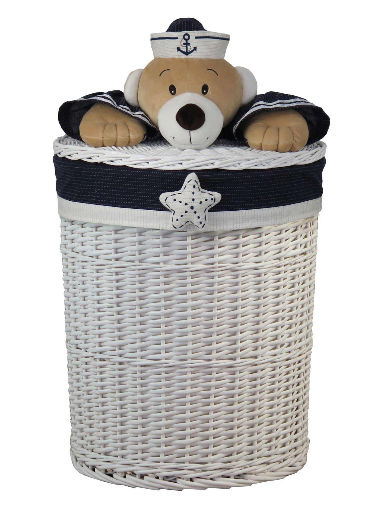 DVier Wäschekorb Wäschetonnen Wäschetruhe Weide weiß rund gr.M 60L Marinebär