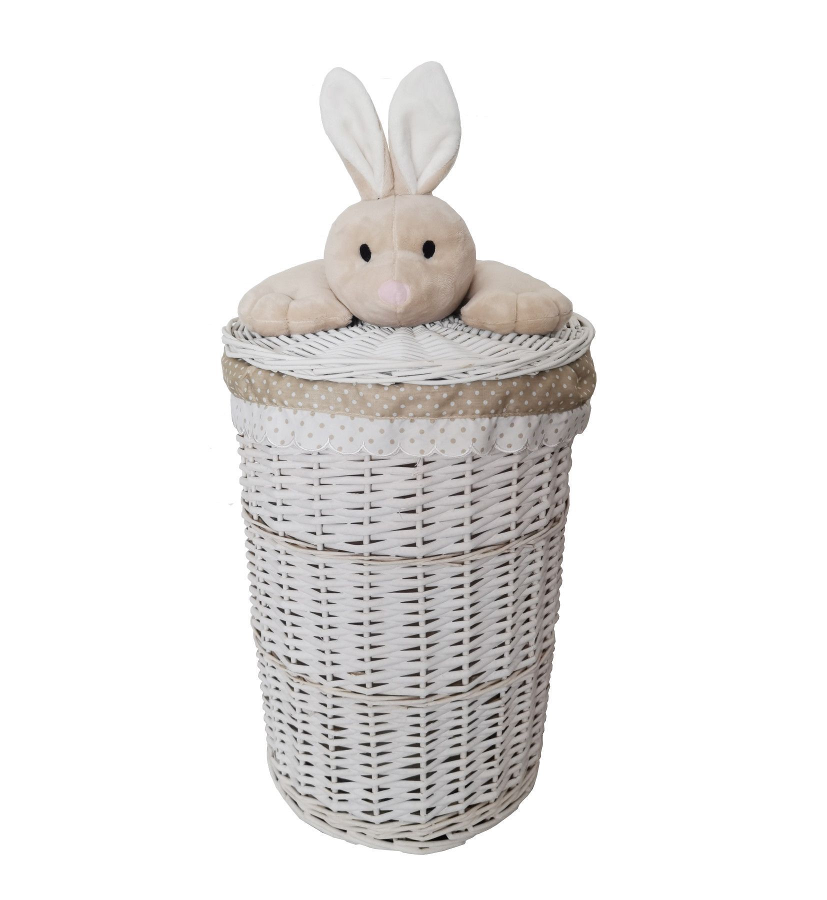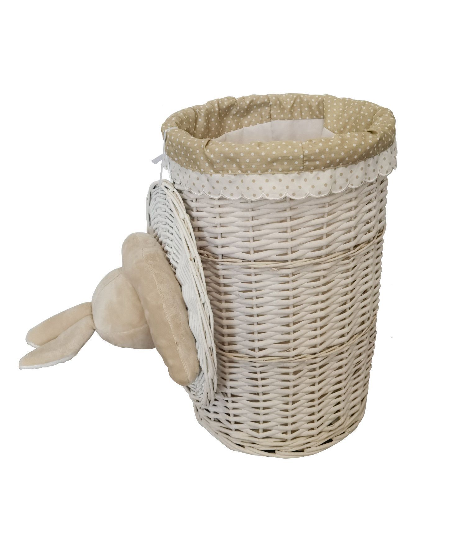 DVier Wäschekorb Wäschetonnen Wäschetruhe Weide weiß rund gr.S 30L Kaninchen