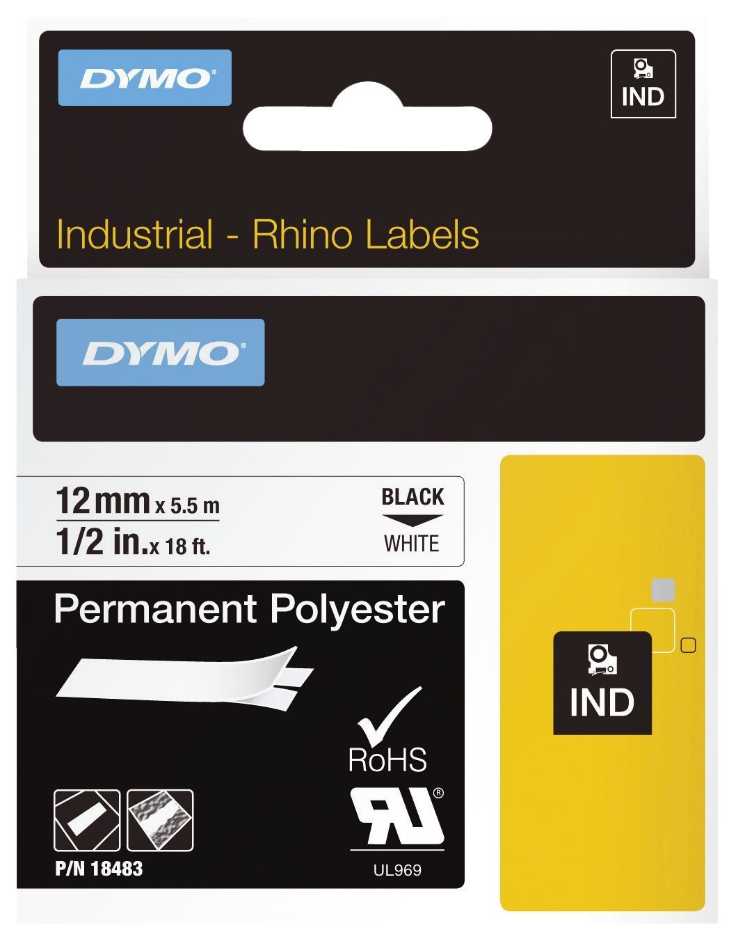 Dymo Dymo® 18483 Permanentes Polyesterband Industrieband, Polyester, 5,5 m x 12 mm, schwar