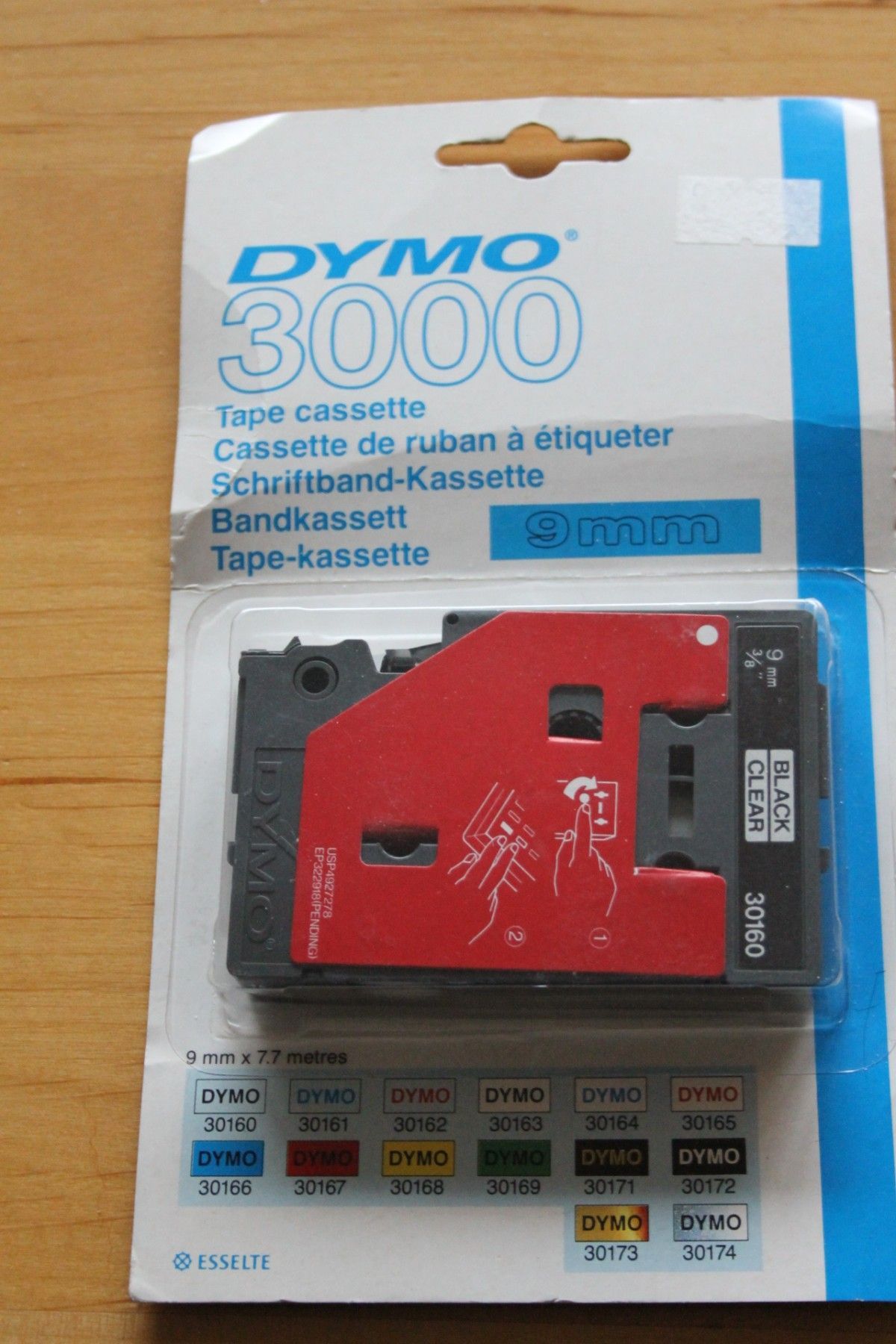 DYMO 3000 Schriftbandkassette; schwarz auf klar; 9mm x 7,7 M. , lesen