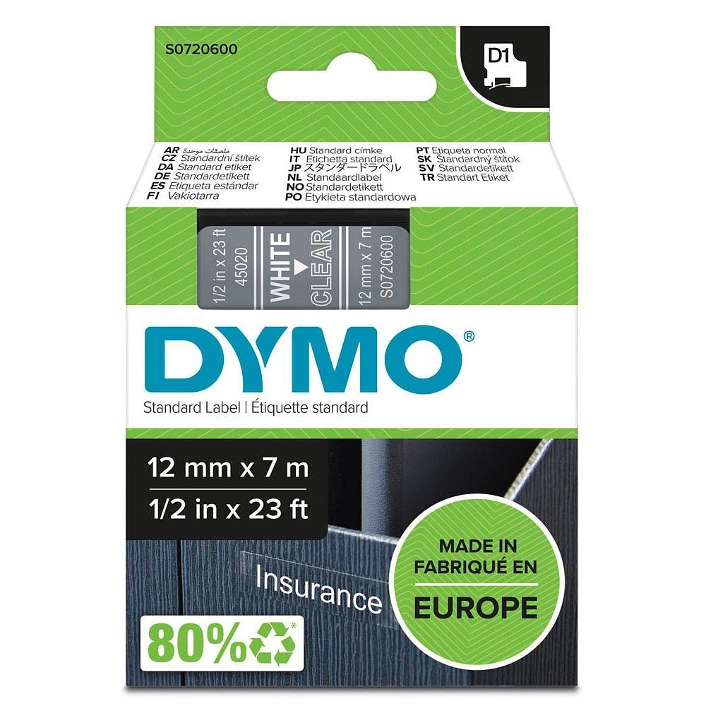 Dymo Dymo D1-Schriftband 12mm x 7m weiß auf transparent