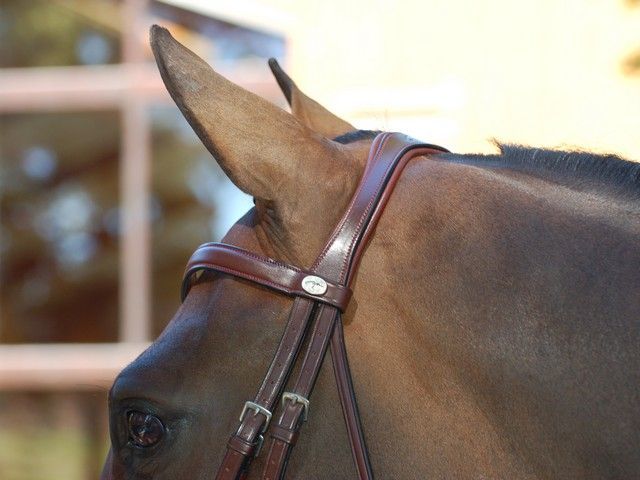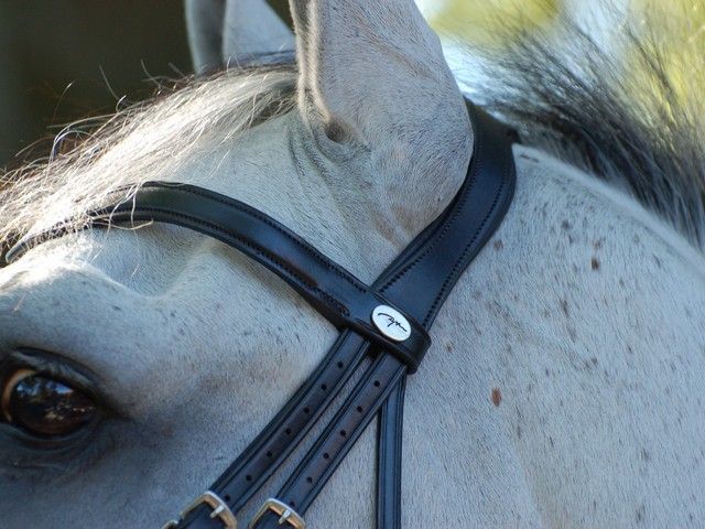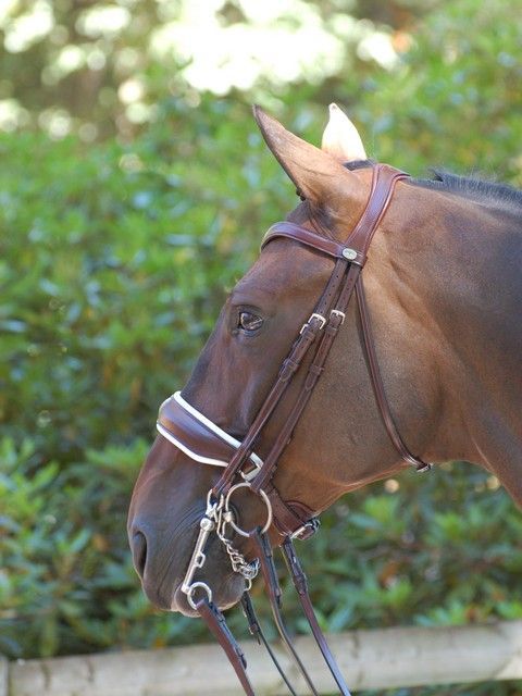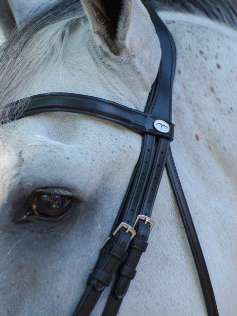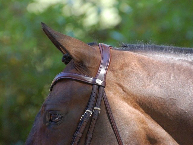 Dyon Kandarenzaum mit schwedischem Reithalfter Reithalfter mit mattem Leder unterlegt Schmales weiches Kopfstück einschließlich Backenstücke: Anatomisch geformtes Genickstück, welches den Ohrenansatz frei lässt Neopren-Polsterung Mit schwarzem Leder aus extra weichem vollnarbigem Schafsleder unterle