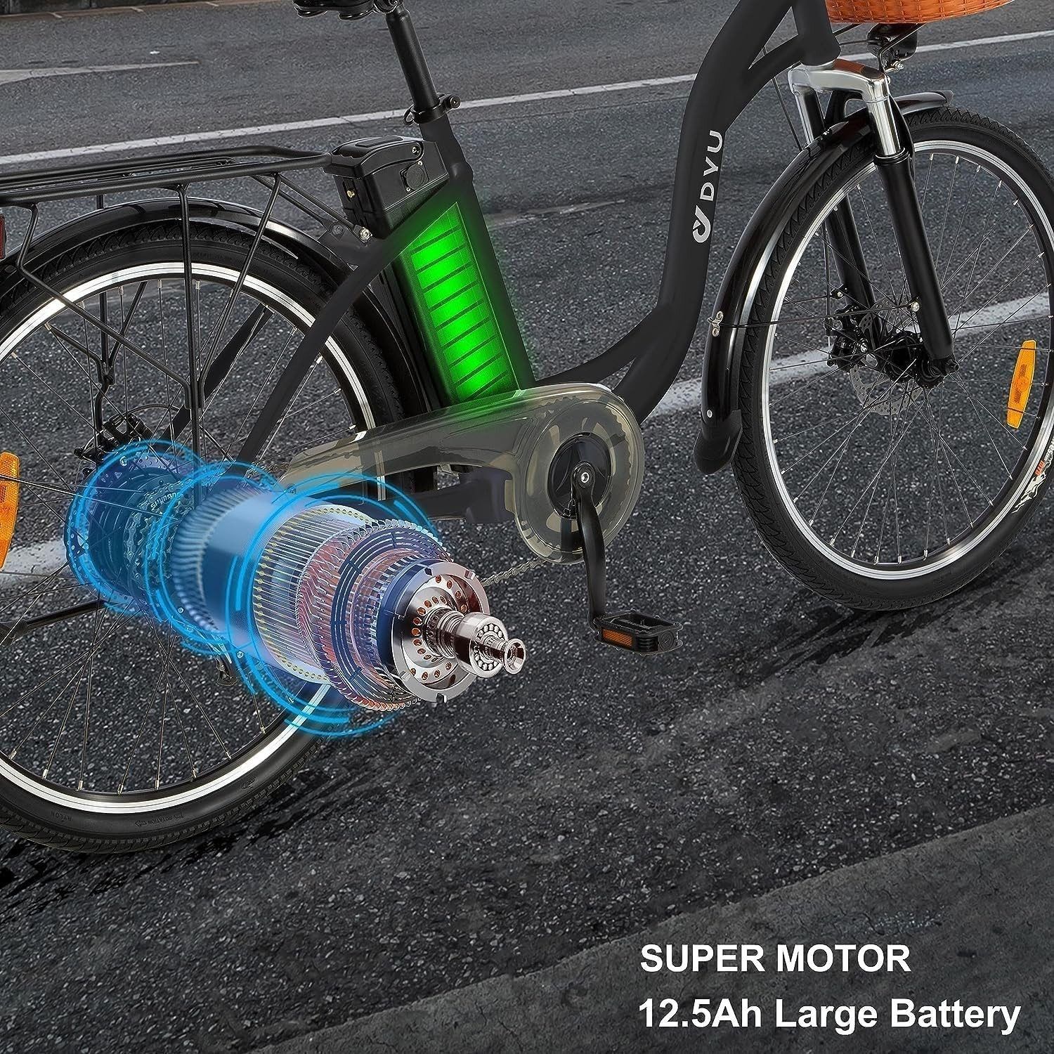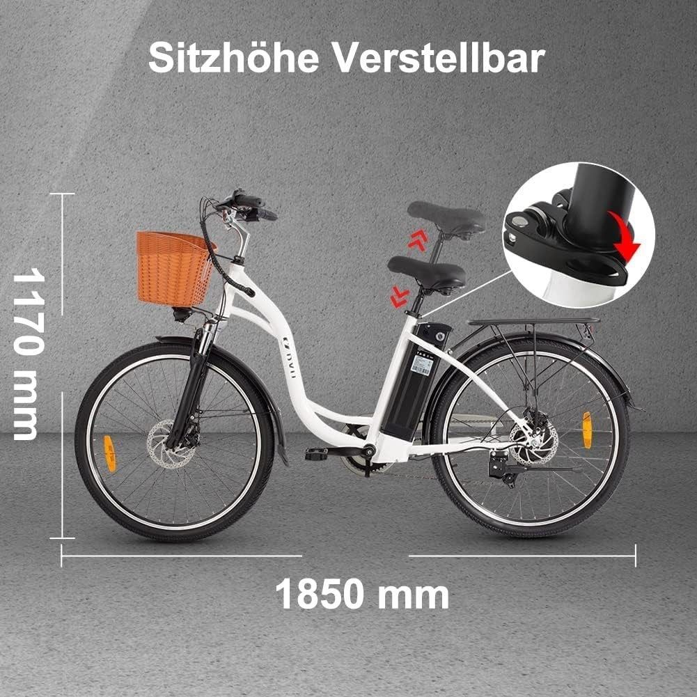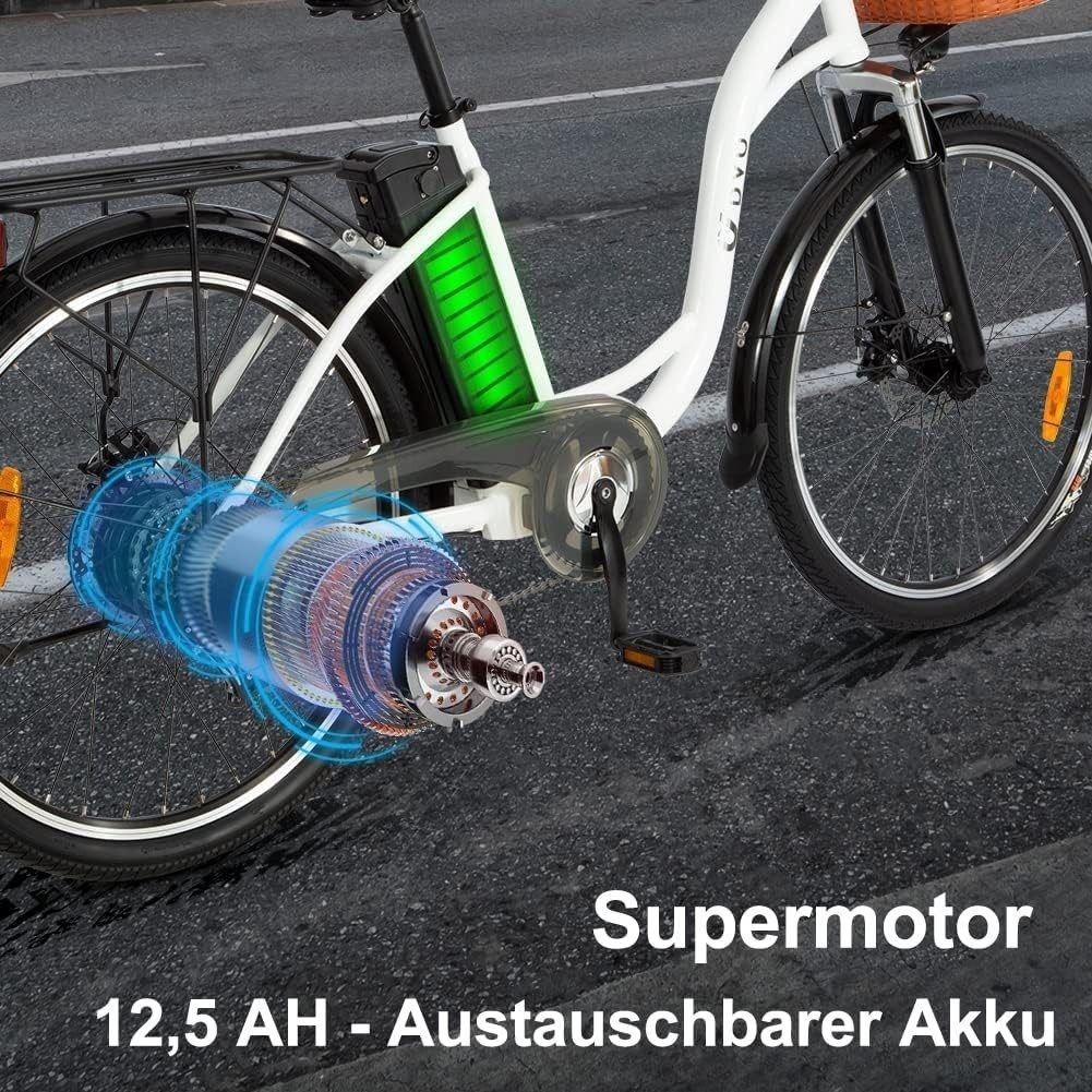 E-Bike 26 Zoll Elektro Fahrrad mit Frontkorb 12.5Ah 36V Abnehmbarer Akku, Pendler