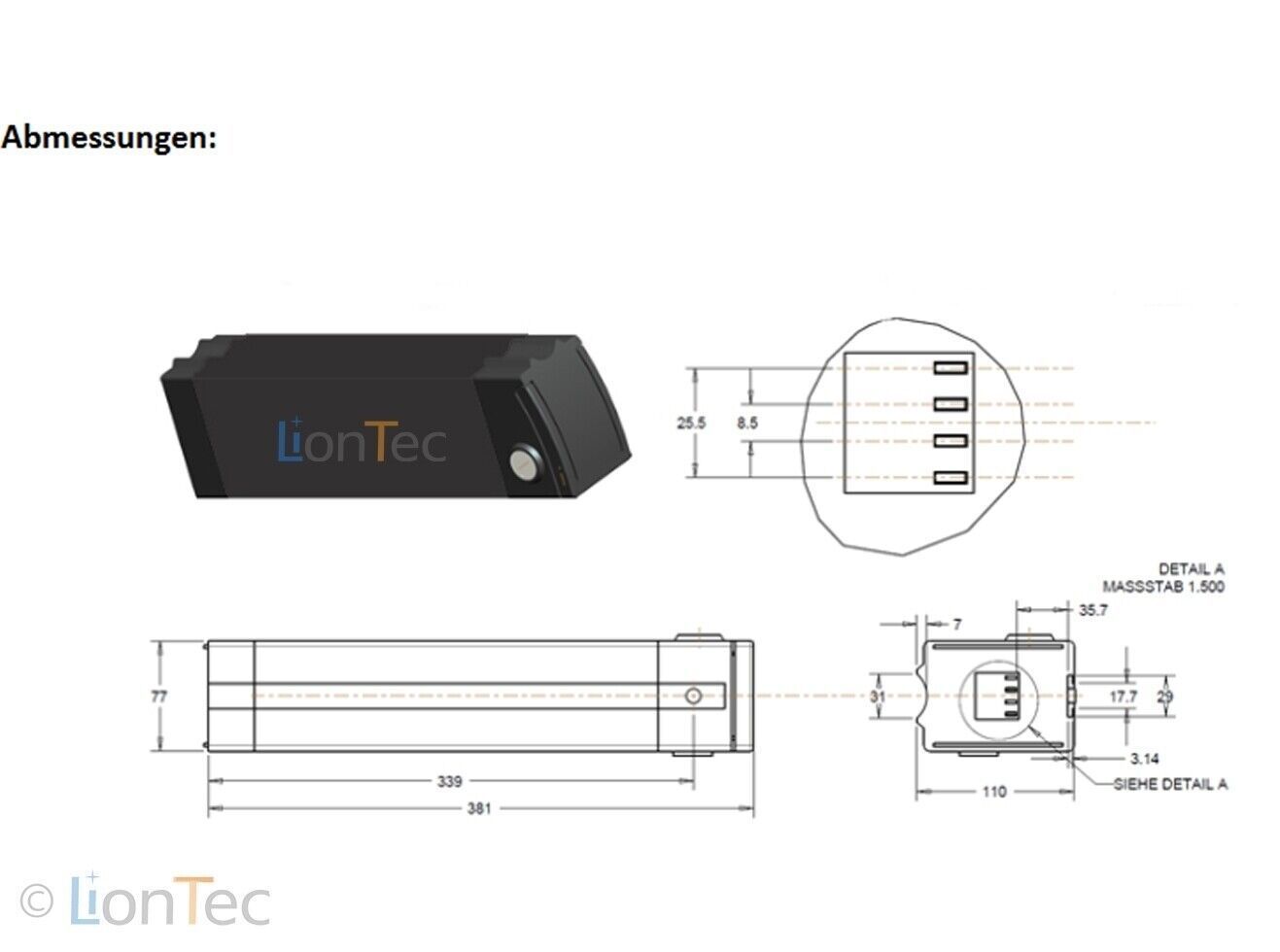 E-Bike Fahrrad Akku (schwarz) 36 V (37 V) - 10,4 Ah für Prophete ohne Ladegerät