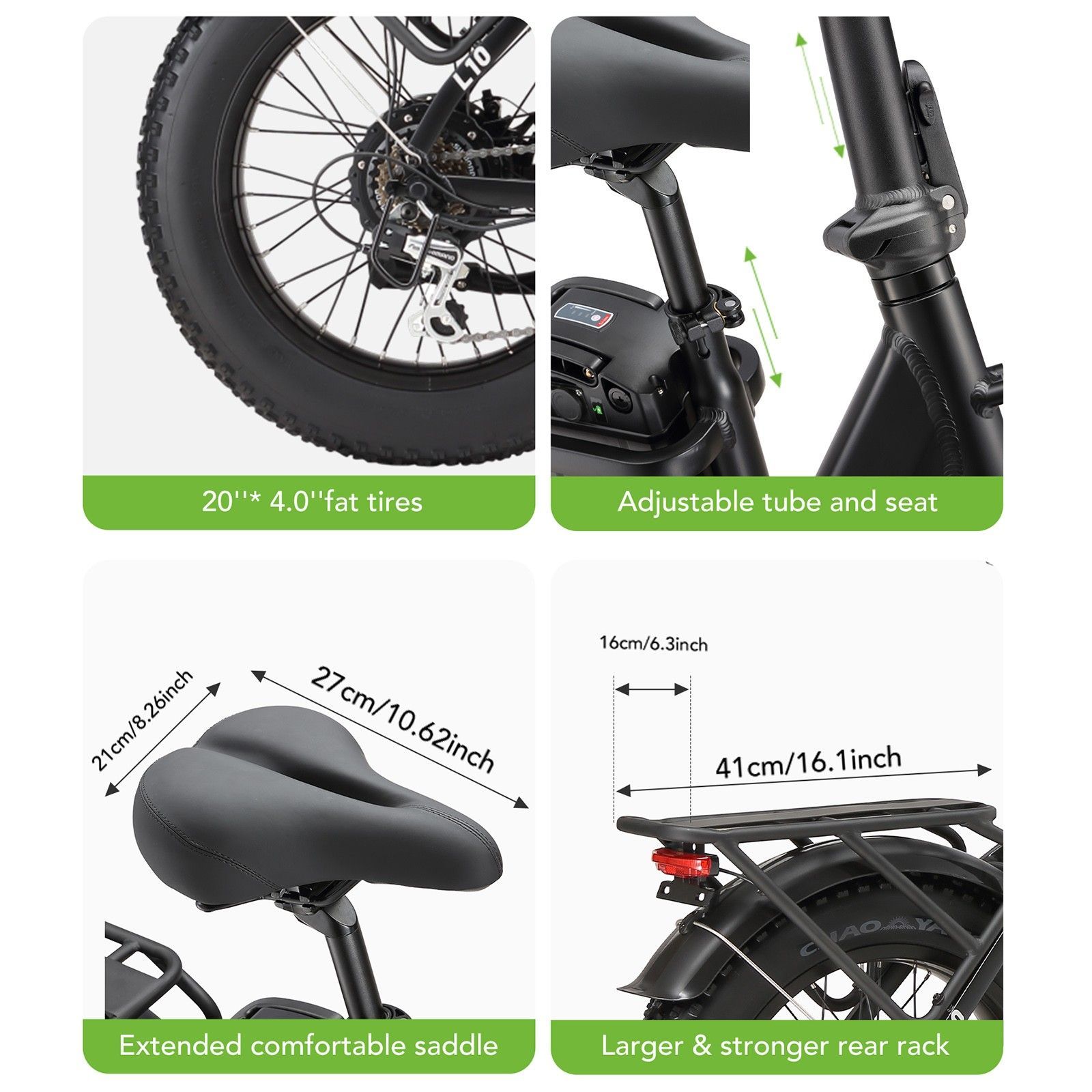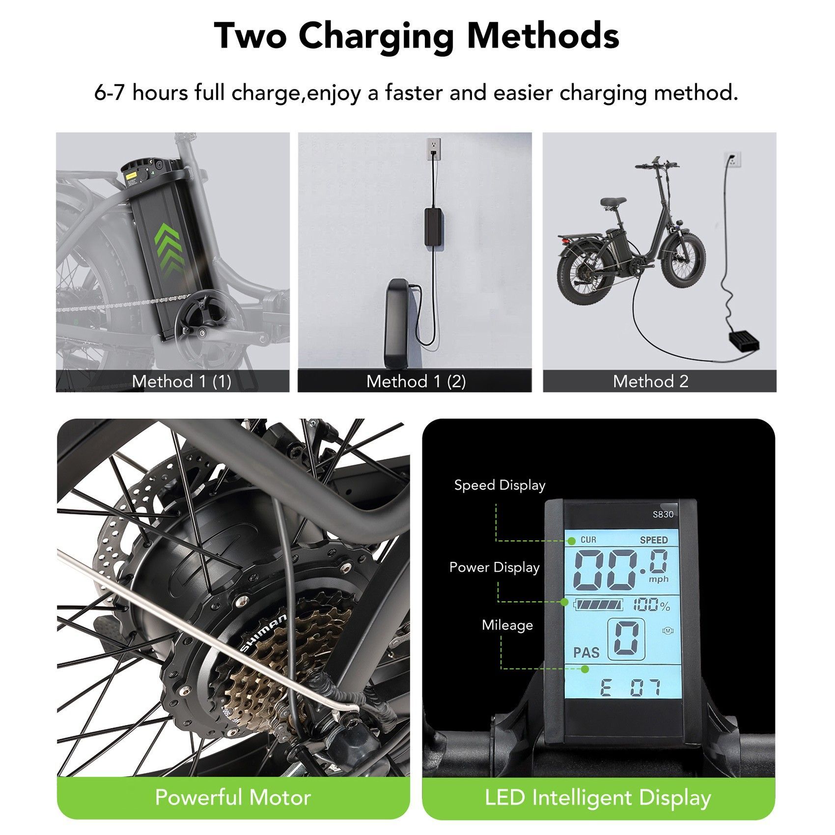 E-Bike Klappelektrofahrrad 48v 20ah Akku, HIMANO 7Gang 20" x 4,0 Fat Tire
