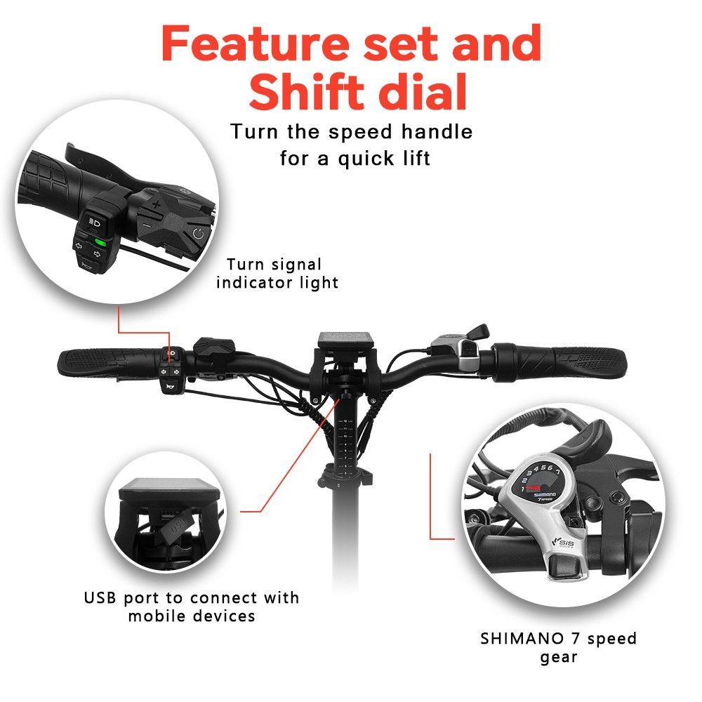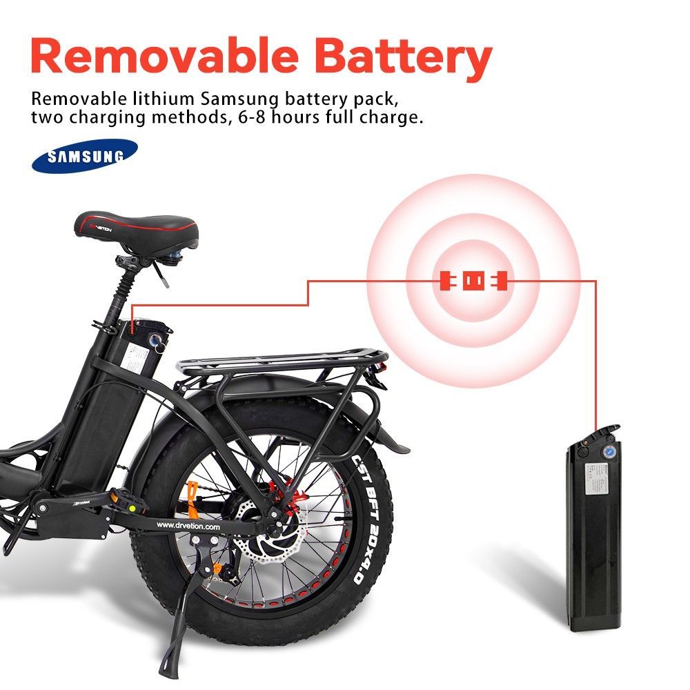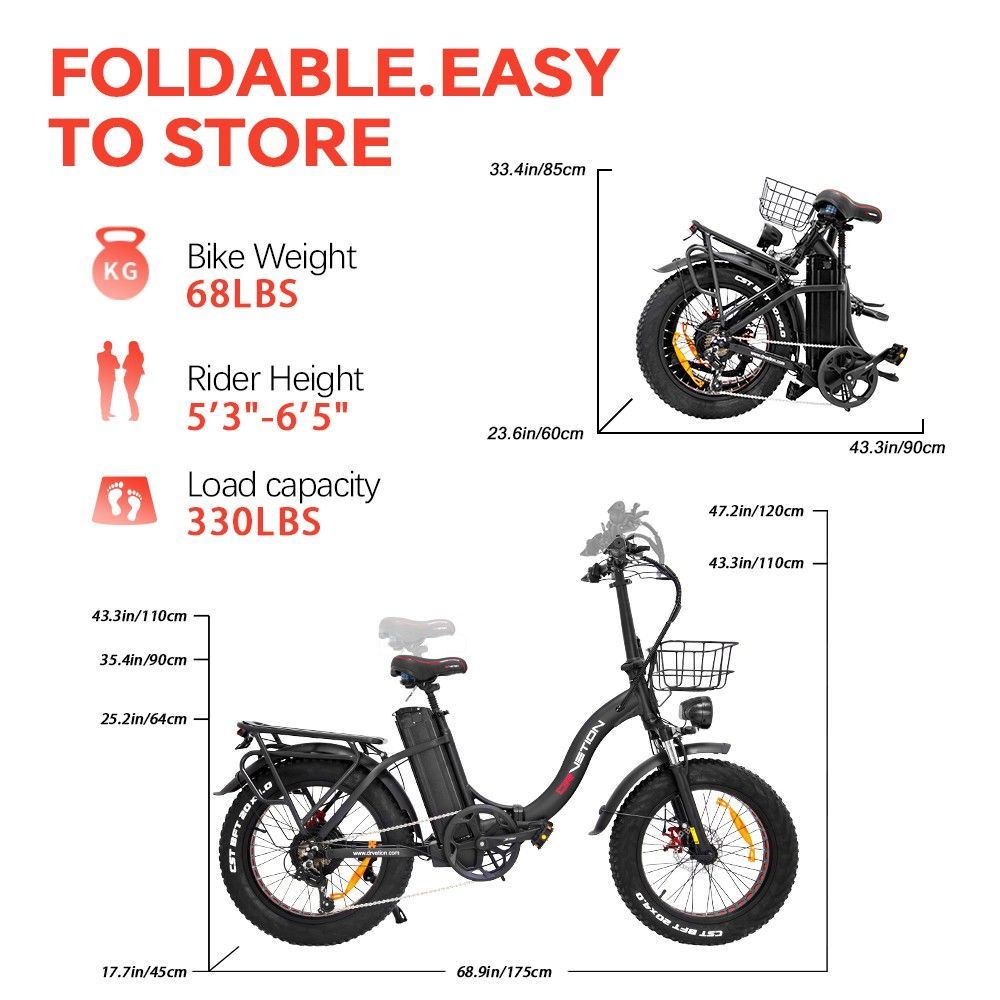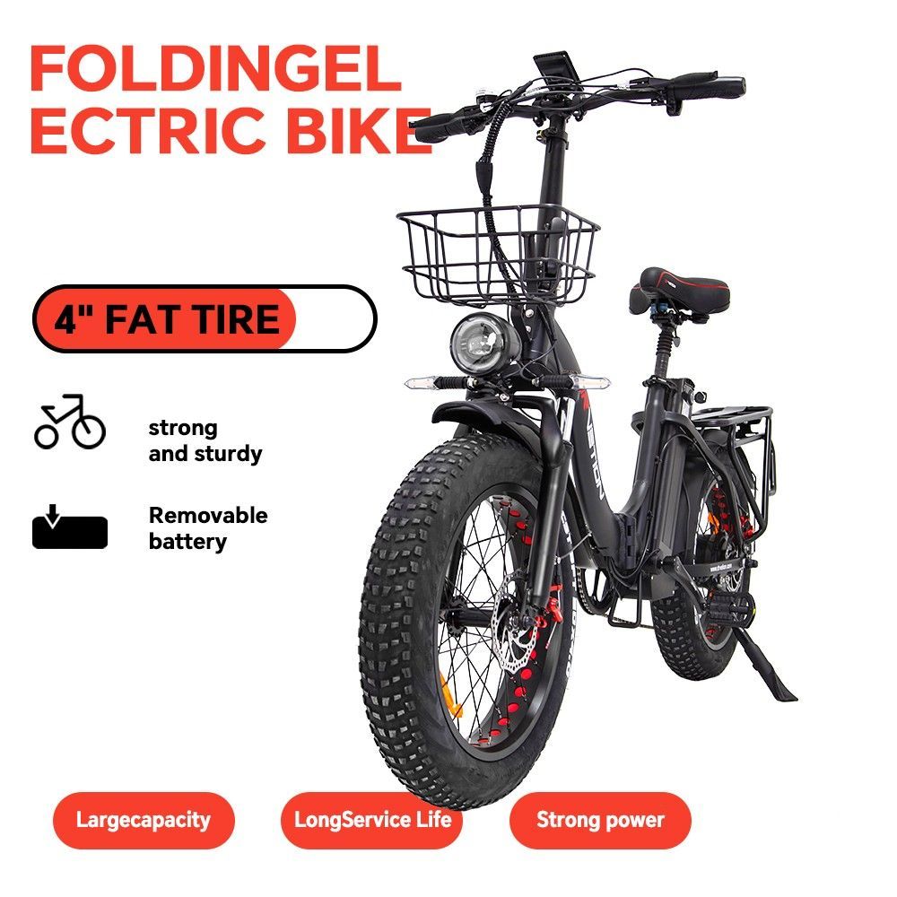 E-Bike Klapprad mit 48V akku, Kettenschaltung, 250W motor Schwarz CT20
