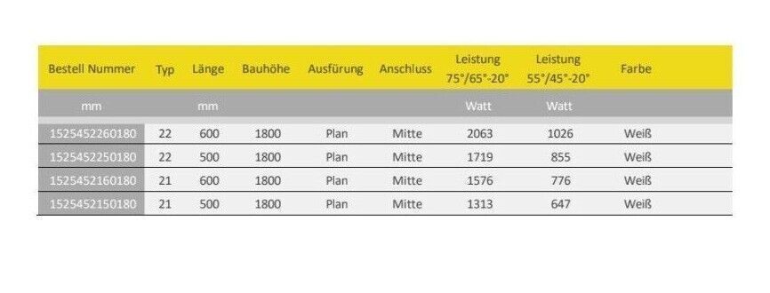 E.C.A Vertikal Plan Flachheizkörper Designheizkörper Weiß Typ 22 500x1800
